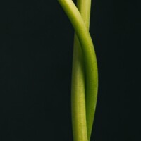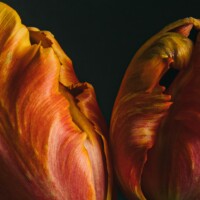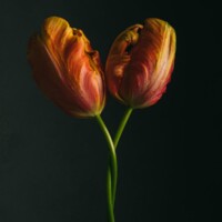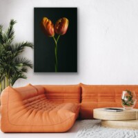 Een ode aan de schoonheid van verbondenheid. Deze fine art foto toont twee tulpen met sierlijk in elkaar gedraaide stelen, symbolisch voor de kracht van liefde en samenzijn.
