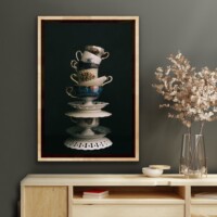 Fine-art print geplakt op 1 mm aluminium verzonken in een houten baklijst, in de kleur zwart of beuken.