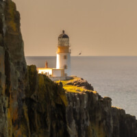 Neist Point op het Isle of Skye voelt als een levend schilderij. De ruige kliffen en de vuurtoren staan in een landschap dat doordrenkt is met Keltische mythes. Hier, waar de wind verhalen fluistert, geloof je bijna dat oude legendes over zeewezens en mysterieuze krachten echt zijn. Het is een plek waar natuur en magie samenkomen in deze foto in painterly stijl.